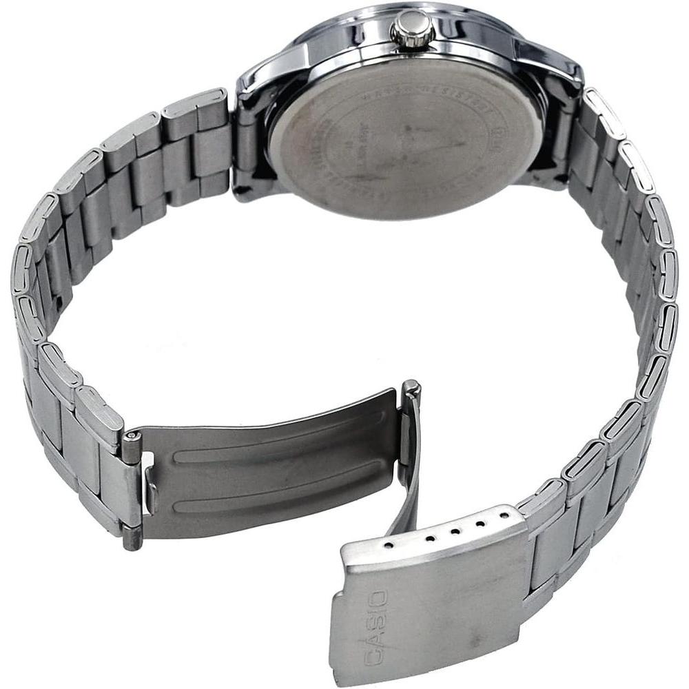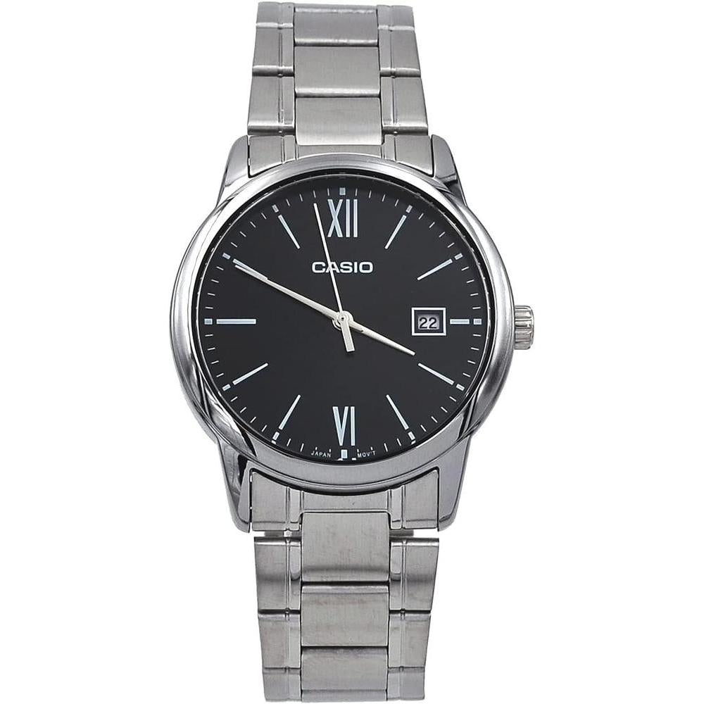Reloj analógico estándar Casio para hombre, acero inoxidable con esfera negra y función de fecha romana, movimiento japonés