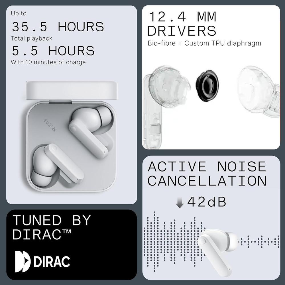 • DIRAC & Daily ANC - DIRAC, uno de los proveedores de audio de renombre para vehículos de lujo, ahora con CMF para cosintonizar, los controladores de biofibra de 0.488 in de grado de estudio proporcionan un escenario de sonido cálido, medios ricos y graves nítidos (permitiendo apagado/personalizado). Para escuchar a diario, la cancelación inteligente de ruido activa de 42 dB está diseñada para tus escenarios más comunes