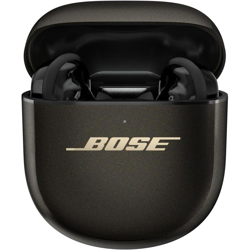 • Componentes incluidos: 2 auriculares Bose QuietComfort Ultra (2.ª generación), Bose Kit de ajuste: 3 pares de almohadillas (S, M, L) 3 pares de bandas de estabilidad (1, 2, 3), Cable USB-C (A a C) de 12, Estuche de Carga Inalámbrica, Funda de carga inalámbrica, Hoja de seguridad