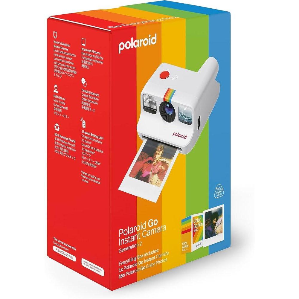 • POLAROID GO MINI CAMERA + MINI PAQUETE DE PELÍCULA: La caja Polaroid GO Everything tiene todo lo que necesitas para que te mires. El paquete incluye la cámara Polaroid GO y un paquete doble de película a color GO, 16 fotos.