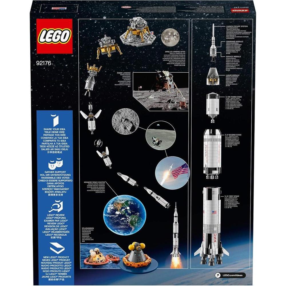 LEGO 92176 Ideas NASA Apollo Saturn V, cohete espacial y vehículos, set de construcción de coleccionista con soporte de exhibición
