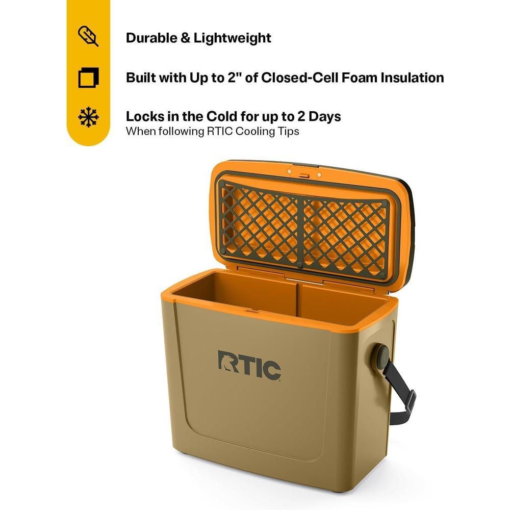 Enfriador portátil RTIC de 16 qt para exteriores, con correa y asa, ideal para playa, picnic, camping y viajes