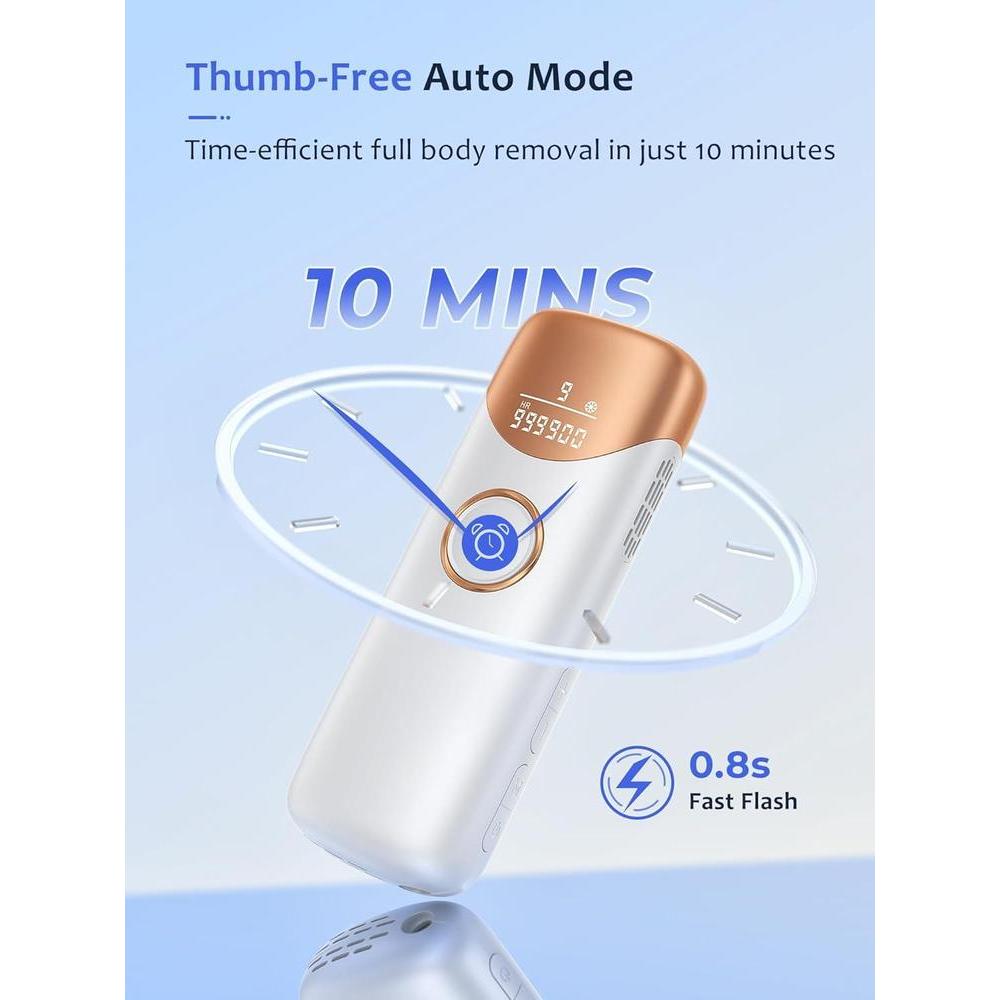 • ️ Ofrece 9 niveles de energía personalizables: comienza bajo y ajusta según la comodidad. Utiliza el modo manual para obtener precisión en áreas pequeñas como el labio superior, la línea del bikini y las axilas. Cambia al modo de flash automático para una cobertura rápida y eficiente en zonas más grandes como piernas, brazos y espalda. Diseñado tanto para hombres como para mujeres.