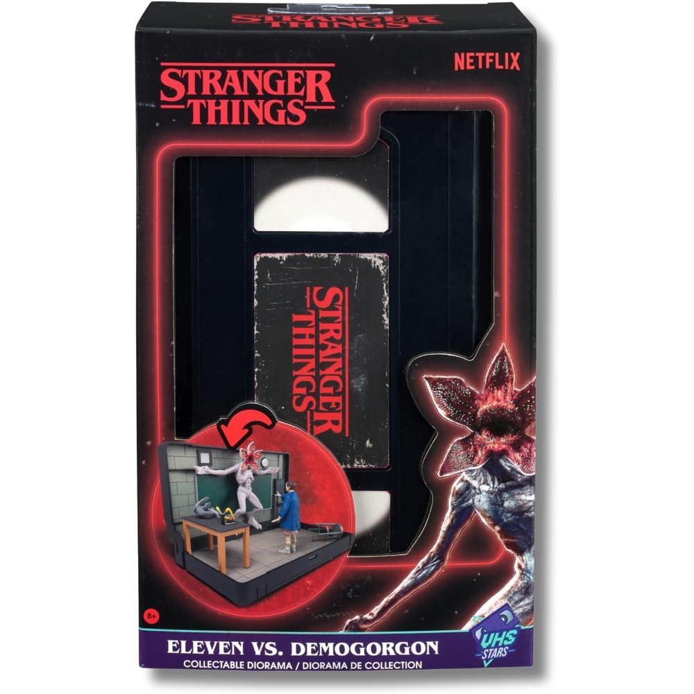 • COSAS EXTRAÑAS VHS DIORAMA. Se abre para revelar una escena de aula en 3D altamente detallada con Eleven vs. Demogorgon de la icónica serie de televisión.