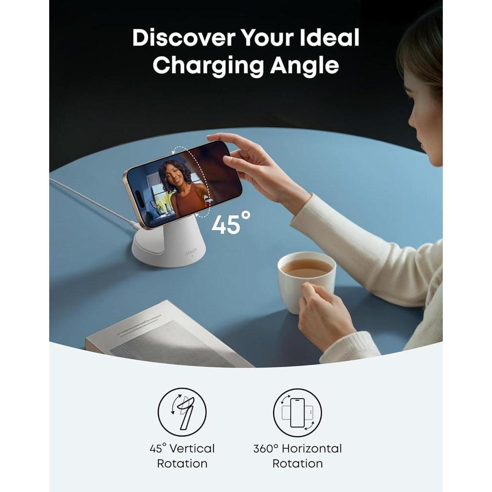 • Establece tu Ángulo Preferido:Ajusta verticalmente hasta 45 grados (45°), para encontrar tu vista de carga óptima y disfruta del modo StandBy en orientación horizontal.