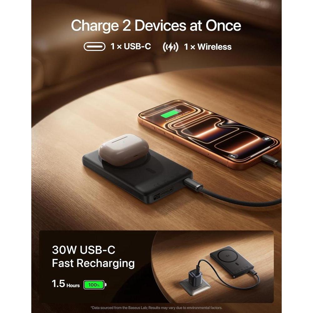 Baseus Picogo Magsafe Power Bank, cargador portátil magnético con carga rápida inalámbrica USB-C para iPhone y más dispositivos