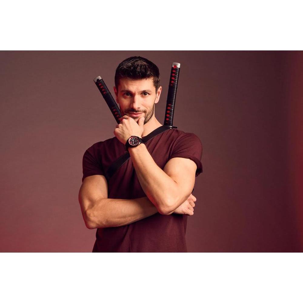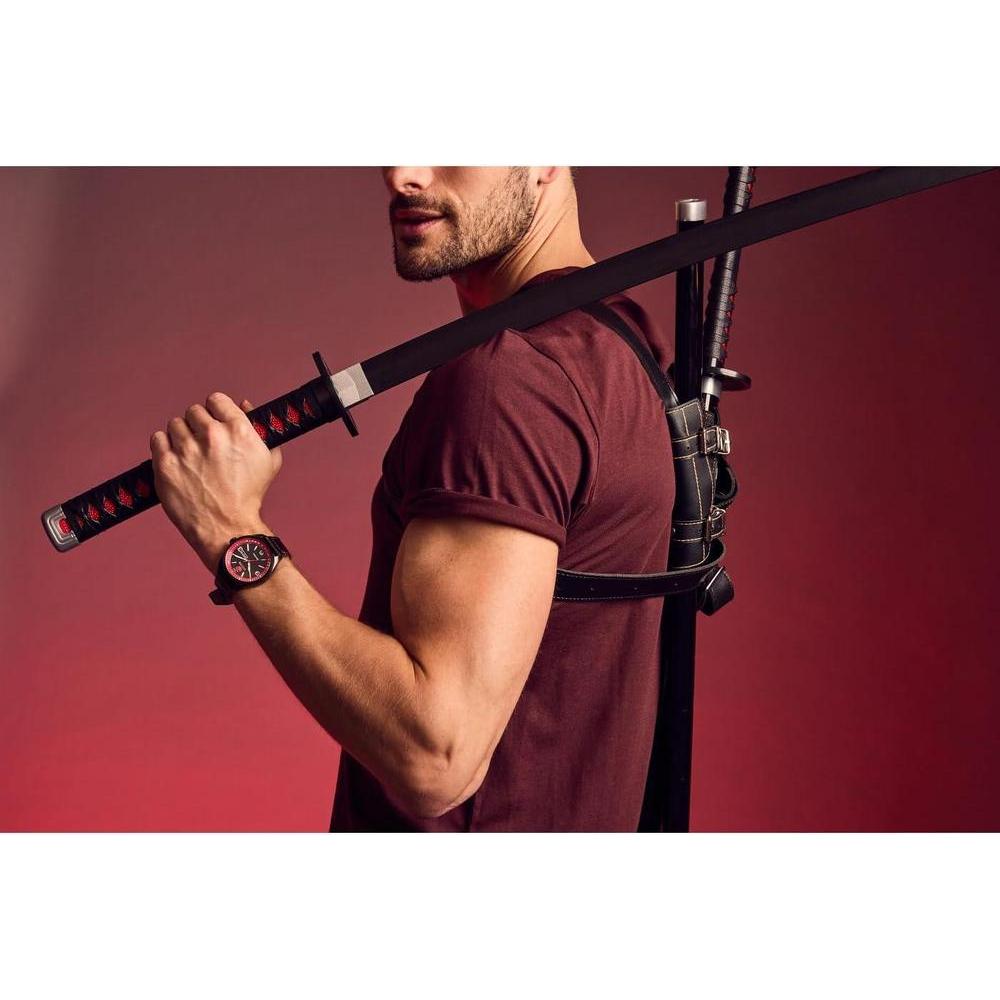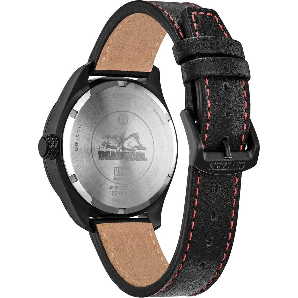 Citizen Eco-Drive Marvel 'Here Comes Deadpool', caja de acero inoxidable negro, correa y esfera negra de cuero