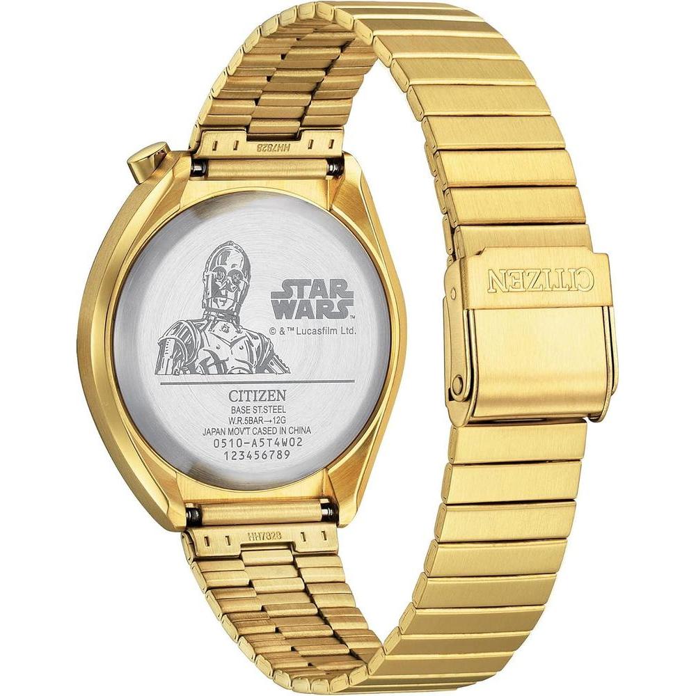 Citizen Reloj de cuarzo Star Wars para hombre inspirado en C-3PO, diseño coleccionable en acero inoxidable dorado