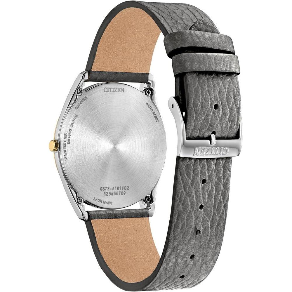 Citizen Reloj unisex Eco-Drive Classic Eco, acero inoxidable de dos tonos, correa de cuero gris, modelo AR3124-07H