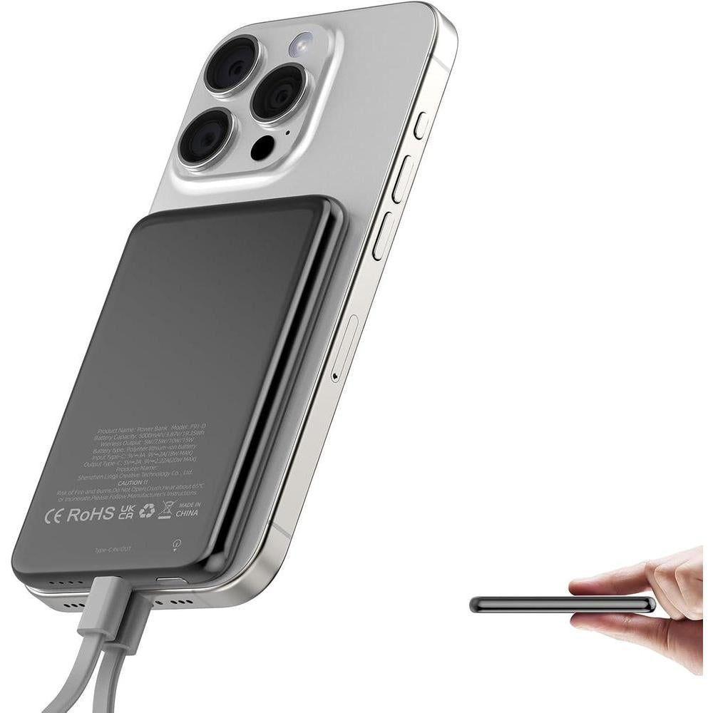 Dbasne Batería portátil: cargador inalámbrico magnético de carga rápida con USB C para iPhone Pro/Pro Max/Mini Series