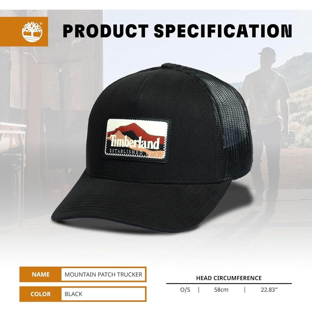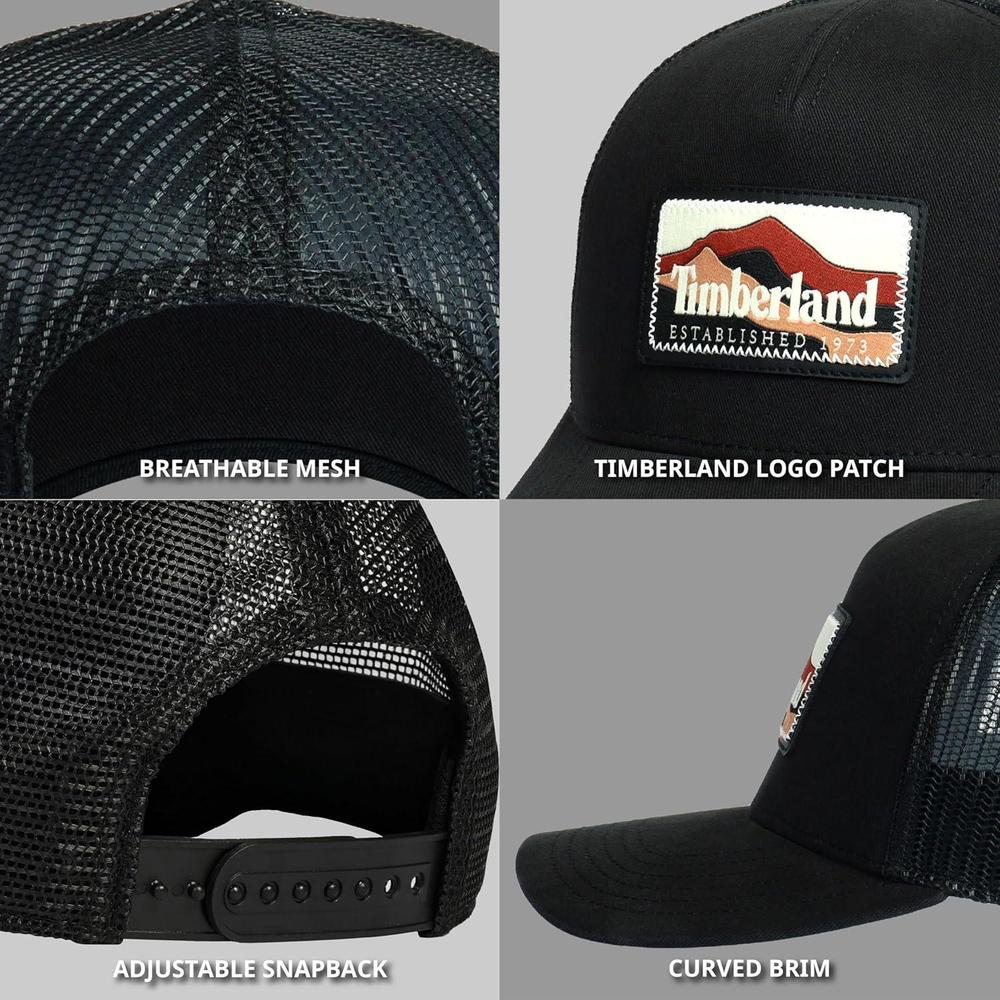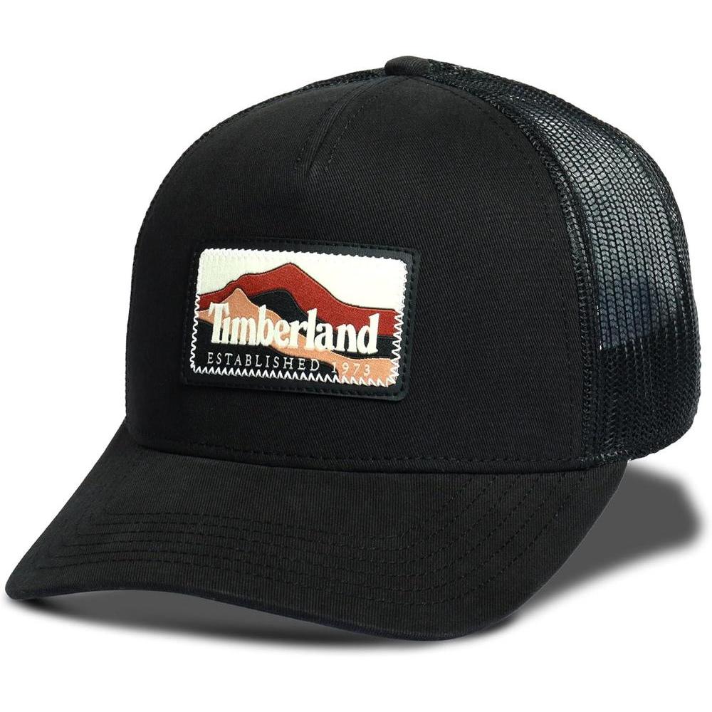 Gorra de hombre Timberland diseño camionero con parche montaña, ajuste de broche y banda anti-humedad