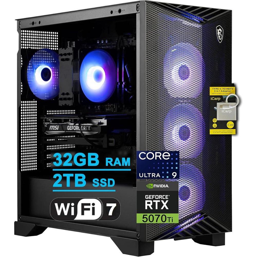 MSI Aegis R2 AI: Torre para juegos con Intel Ultra 9, 32GB RAM, 2TB SSD, RTX 5070 Ti, Wi-Fi 7 y PSU 80+ Gold con accesorio ICP