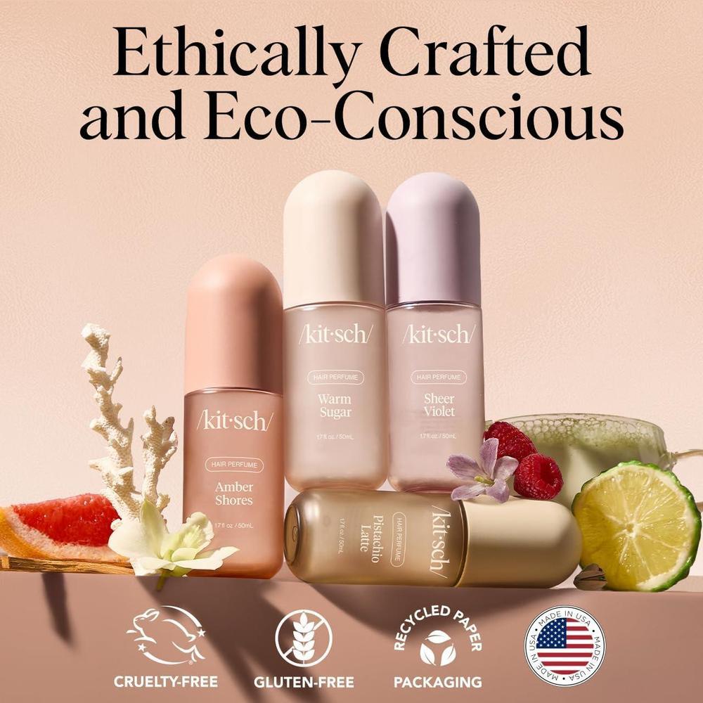 • Ingredientes limpios, fórmula consciente:Nuestro perfume para el cabello Kitsch es vegano, no testado en animales y no contiene ftalatos, parabenos, PFAS ni CMR sintéticos. El tamaño de 1.7 onzas líquidas (48.19 g) es ideal para llevar contigo y disfrutar de frescura en cualquier lugar, y la botella está fabricada con un 30% de material reciclado posconsumo, porque lucir un cabello perfecto no debe ser a costa del planeta.