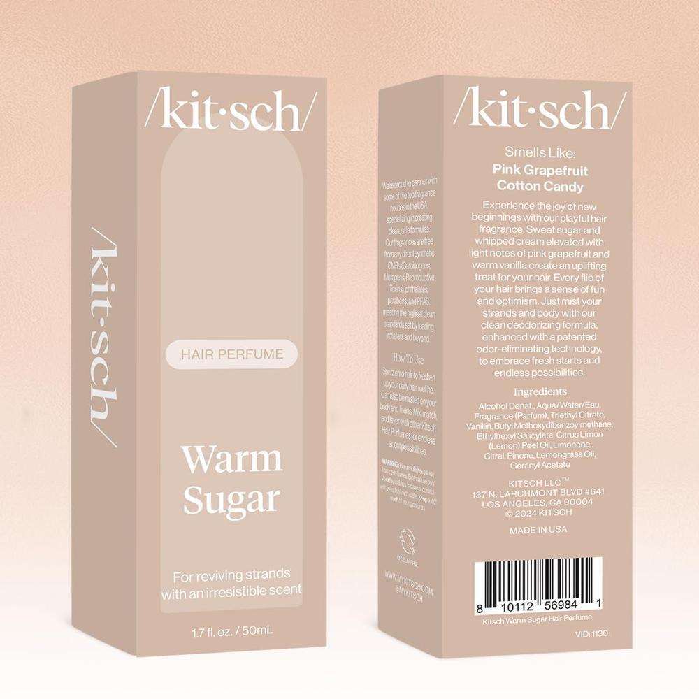 Perfume Warm Sugar Kitsch - Desodoriza y elimina olores para cabello, cuerpo y almohadas, aroma a pomelo rosado y vainilla