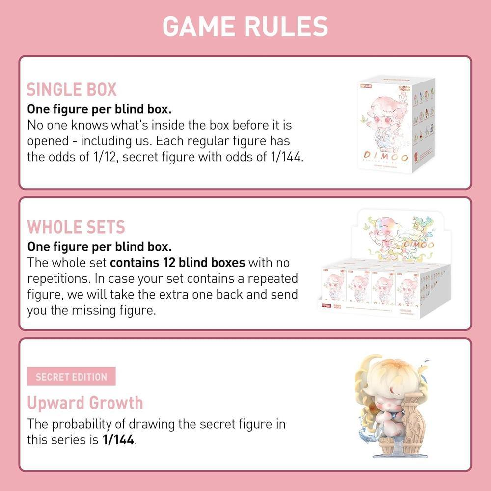 • POP MART DIMOO Formas en la Naturaleza: La caja ciega contiene una figura aleatoria de una serie específica. Cada caja ciega solo contiene una figura. Nadie, incluidos nosotros, sabe lo que hay dentro. Esta colección contiene 12 figuras de caja ciega, una de ellas podría ser la edición secreta.