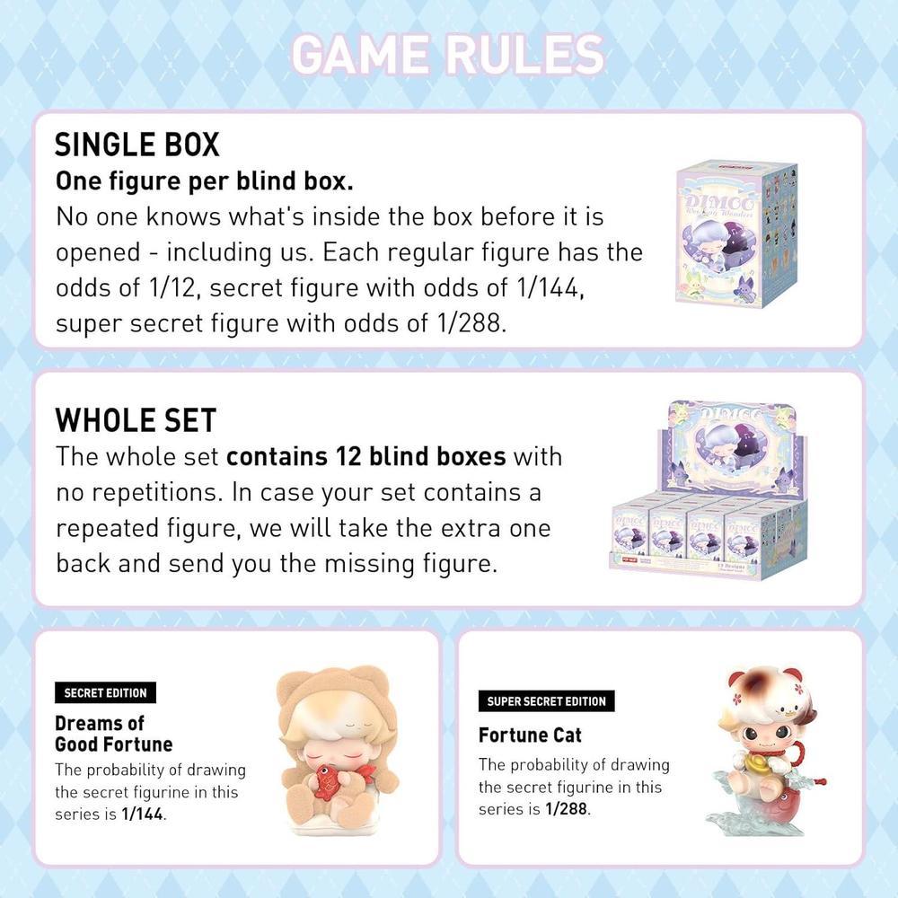 • POP MART Figuras de la serie DIMOO Tejiendo Maravillas: La caja ciega contiene una figura aleatoria de una serie específica. Cada caja ciega solo contiene una figura. Nadie, incluidos nosotros, sabe lo que hay dentro. Esta colección contiene 12 figuras de caja ciega, una de ellas podría ser la edición secreta.