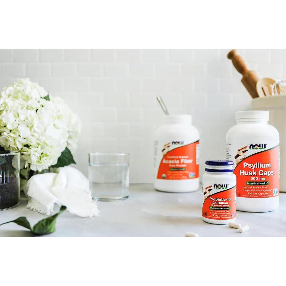 Suplemento de fibra NOW Foods Psyllium Husk, 500 mg, no transgénico, promueve salud intestinal con 500 cápsulas veganas