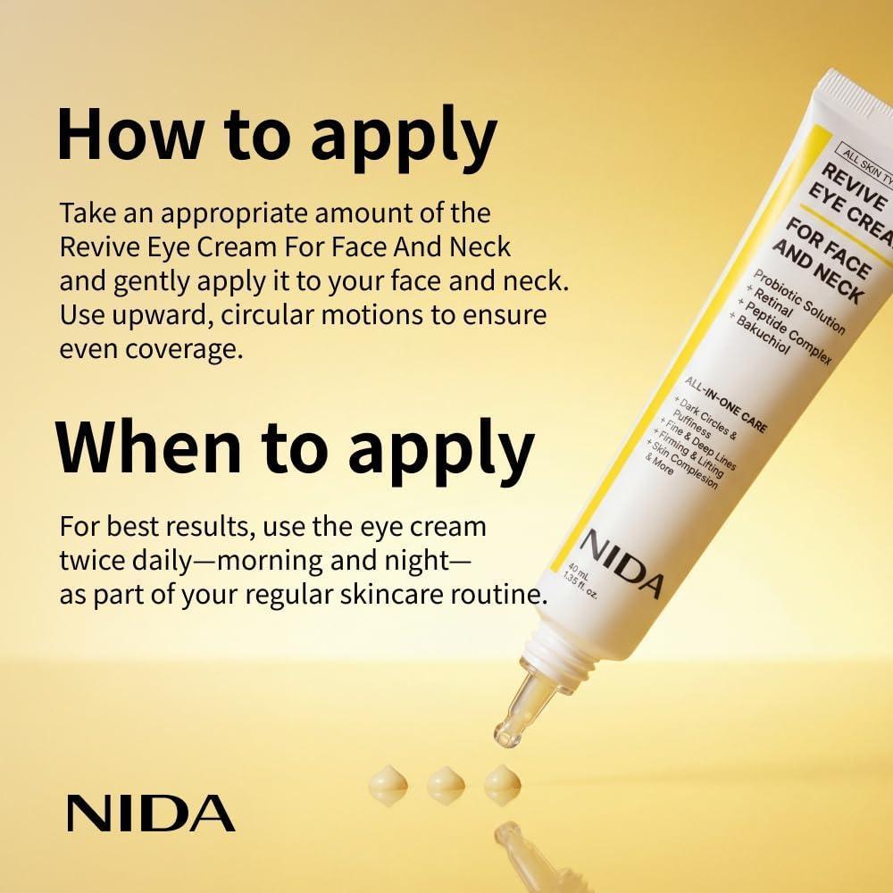 Nida | NIDA Revive Crema De Ojos Para Cara Y Cuello Con Probióticos Retinal Complejo De Péptidos Y Bakuchiol 40ml