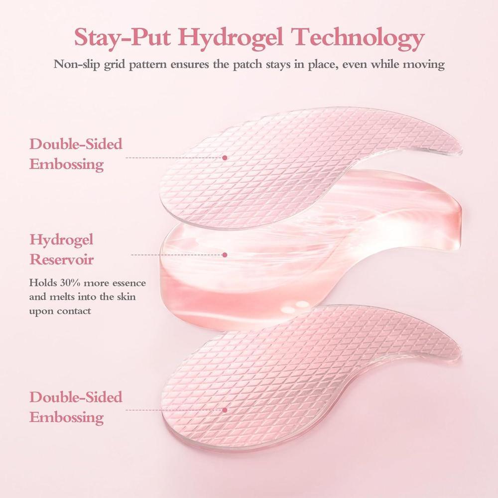 • [Diseño antideslizante y multiusos] Rutina que se mantiene en su lugar: diseñados con un patrón de cuadrícula antideslizante único, estos parches se adhieren perfectamente a los contornos faciales, lo que te permite realizar múltiples tareas sin que se deslicen. La forma versátil trata eficazmente no solo debajo de los ojos, sino también pliegues nasolabiales (líneas de sonrisa), líneas de la frente y arrugas del cuello.