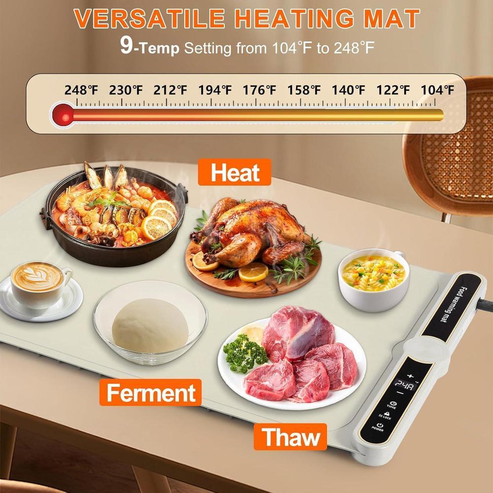Tapete de Calentamiento para Alimentos de Silicona con 9 Modos de Temperatura y Temporizador de Apagado Automático