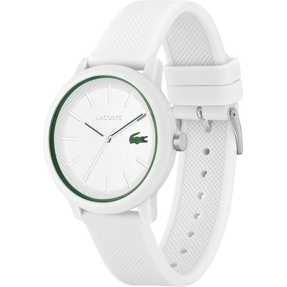 Lacoste Reloj 12.12 de silicona blanco para hombre con movimiento de cuarzo y cristal resistente a arañazos