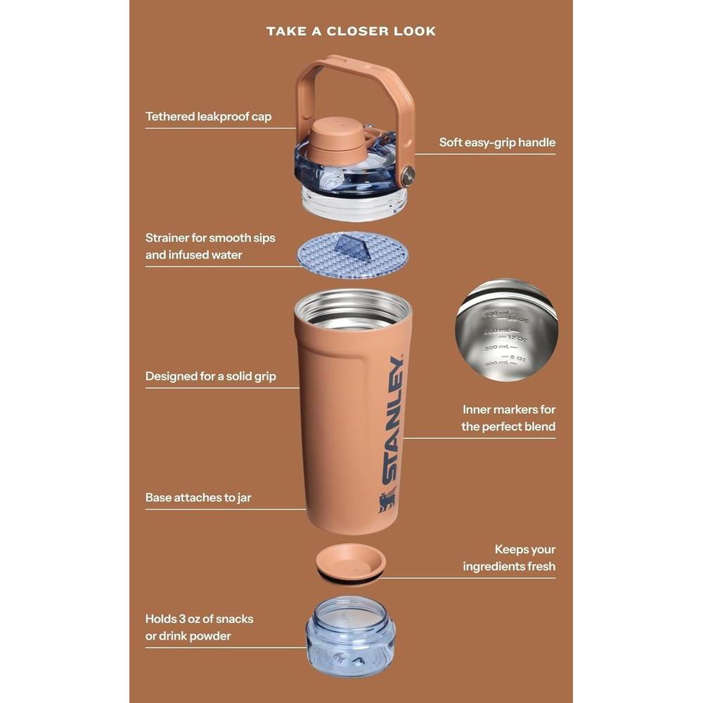 Stanley Activate Botella agitadora acero inoxidable a prueba de fugas con almacenamiento y tapa de flujo rápido