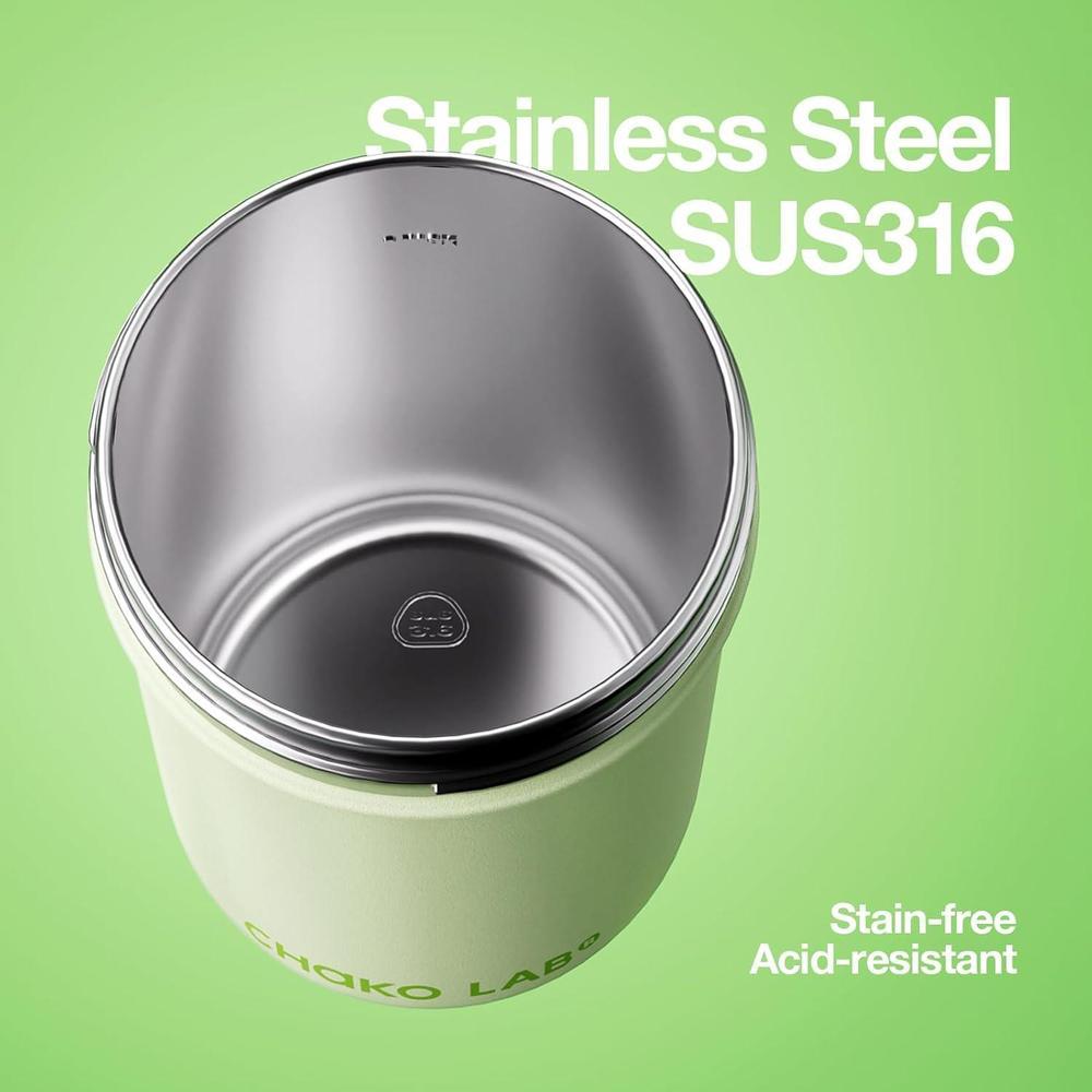 Botella de agua para niños de acero inoxidable, correa y tapa botón, diseño portátil y seguro para viajes, verde matcha