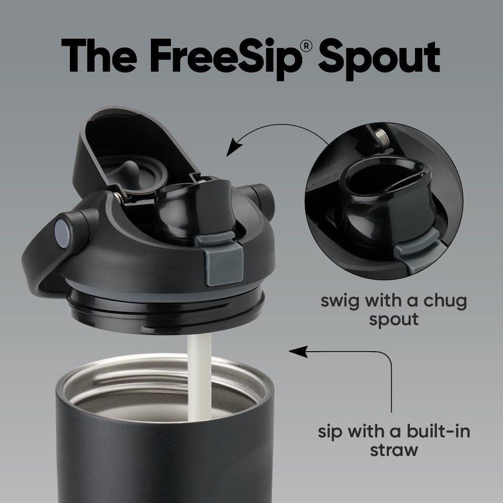 • Elija su estilo de sorbo, paja o trago: la boquilla FreeSip patentada 2 en 1 es única en su tipo; le permite beber en posición vertical a través de la pajita incorporada o beber inclinando hacia atrás la boquilla