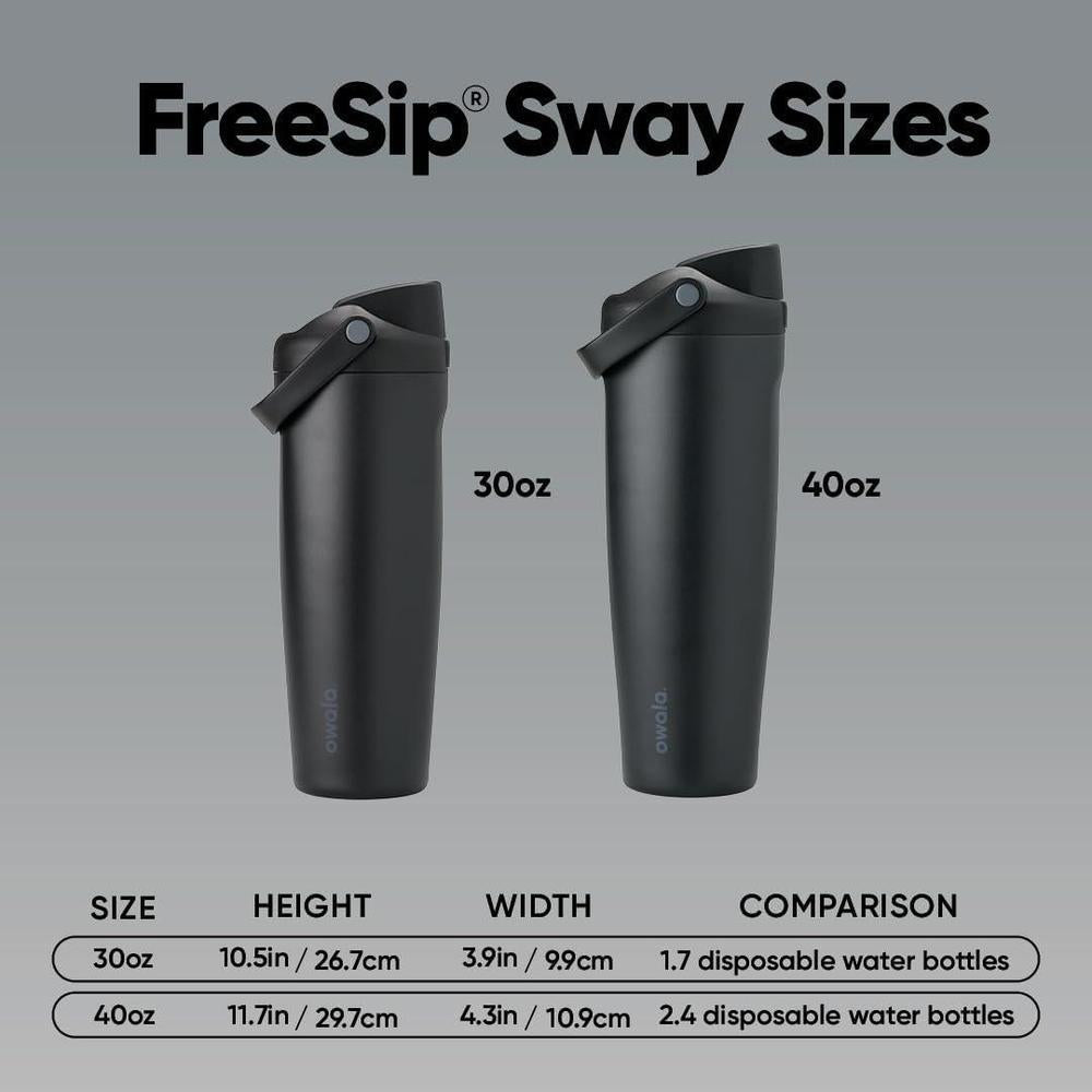 Owala FreeSip Sway de acero inoxidable, botella de agua aislante en color negro, ideal para deportes y actividades al aire libre