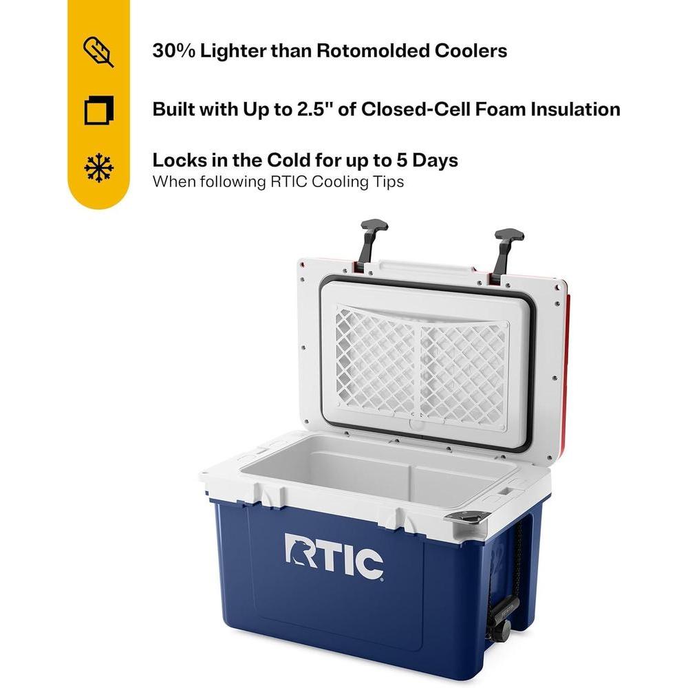 Enfriador ultraligero RTIC 32 cuartos con aislamiento portátil para bebidas, ideal para playa, camping, pesca y más actividades