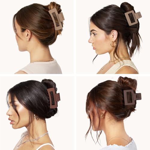 12 Pack Square Claw Clips, Large and Small Hair Claw Clips for Women Thick Thin Hair (Neutral)