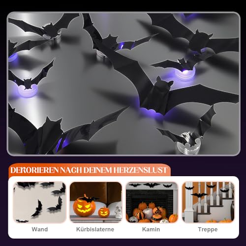 2025 New Halloween 3D Lighted Bats, LED Purple Lighted 3D Bats Halloween Decoration, Upgrade LED Glowing Bat Group Hanging Wall Luminous Glow Clings Multipack (24Pcs Black)