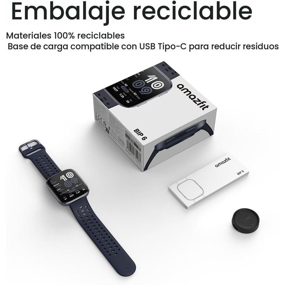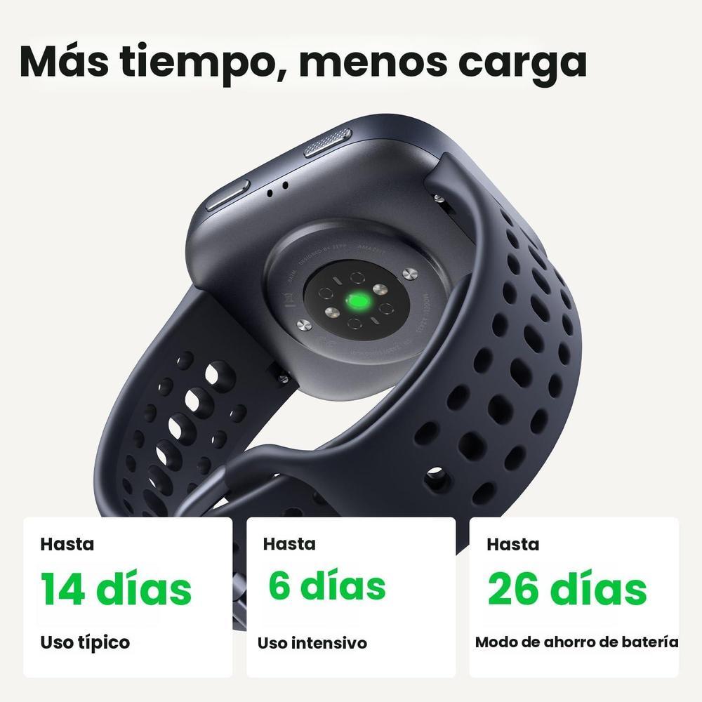 • Hasta 14 días de duración de la batería: el reloj inteligente Amazfit Bip 6 te acompaña en tu entrenamiento y recuperación hasta por dos semanas seguidas, sin necesidad de cargarlo todas las noches.