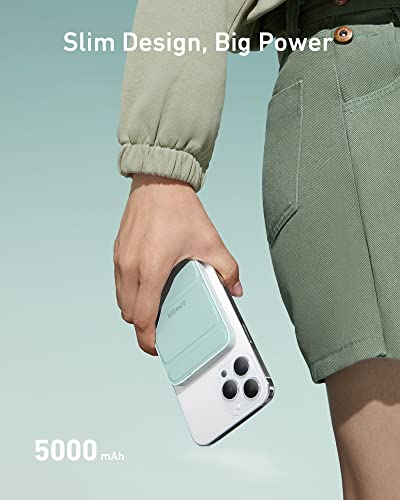 Anker 622 Magnetic Battery (MagGo), 5,000mAh Foldable Magnetic Wireless Portable Charger with Stand and USB-C Port (On The Side), Magsafe-Compatible for iPhone 16/15/14/13 Series