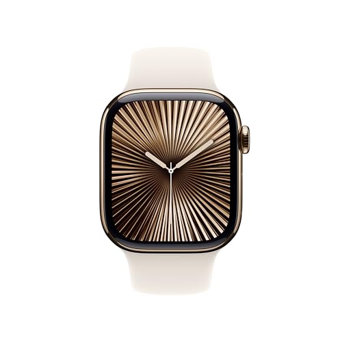 Apple Watch Series 10 [GPS + Cellular 42mm case] Smartwatch with Gold Titanium Case with Starlight Sport Band - S/M. Fitness Tracker, ECG App, Always-On Retina Display, Water Resistant