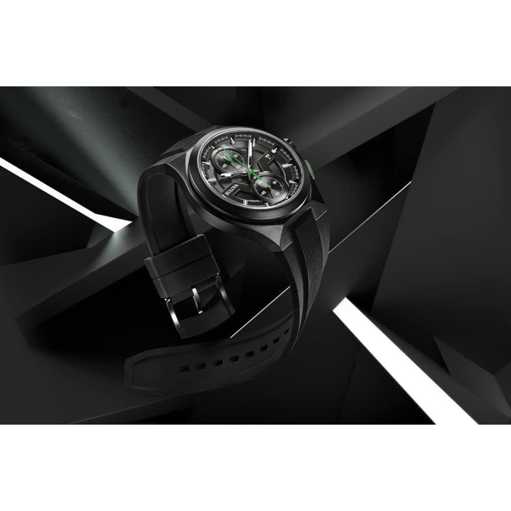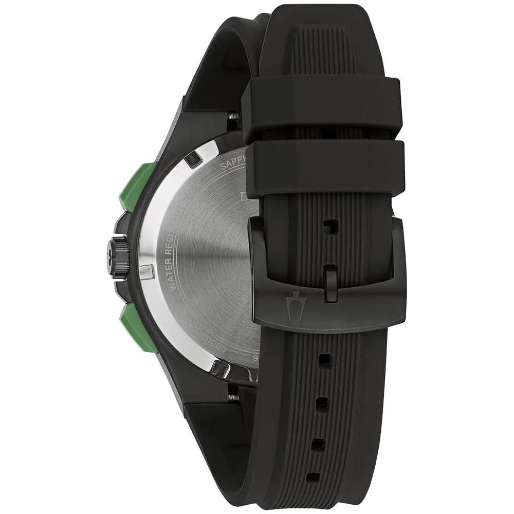 Bulova Maquina Sport - Reloj de cuarzo para hombre con caja de acero inoxidable negro, cronógrafo 6 manecillas y correa de silicona