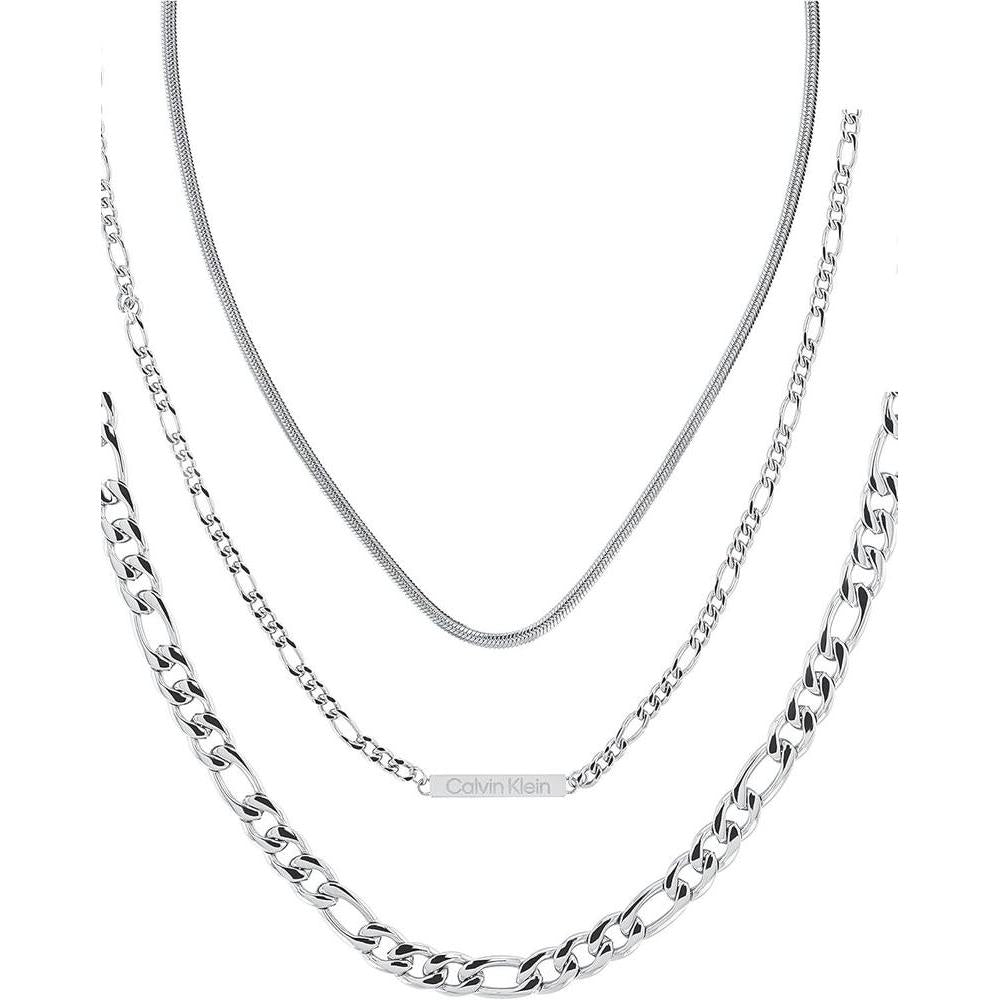 • Sensación contemporánea: un conjunto de tres collares de cadena enlazados de Calvin Klein caracterizados por sus distintivas siluetas y diseños.