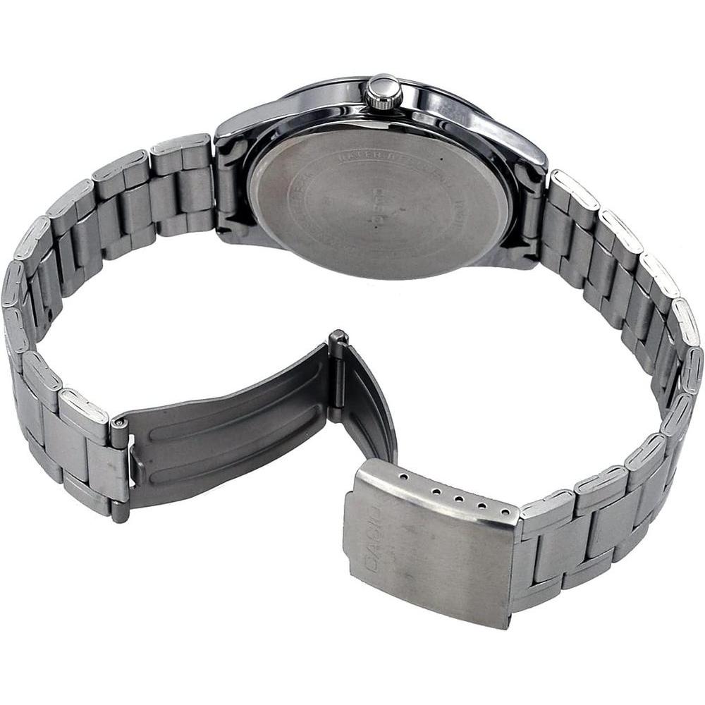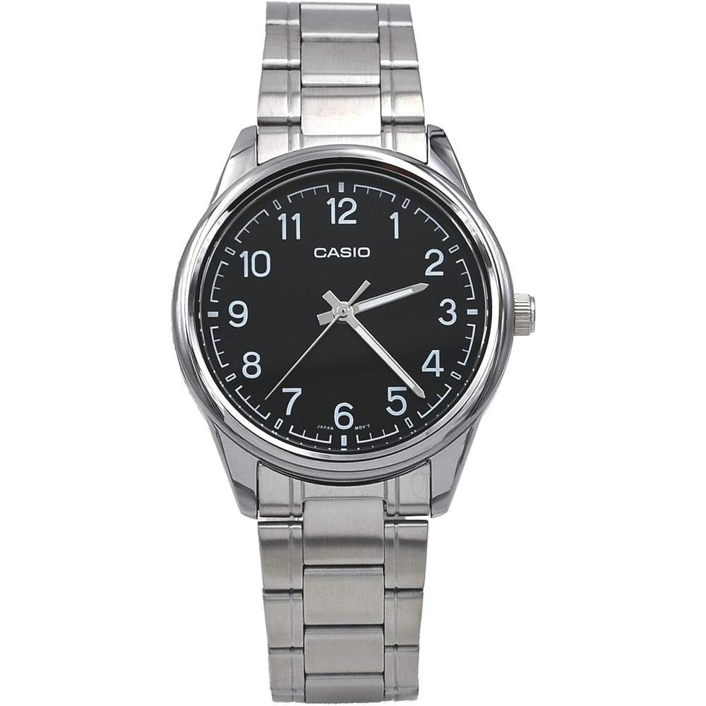 Casio MTP-V005D-1B4 Reloj analógico de acero inoxidable para hombre con números de esfera negra, movimiento de cuarzo