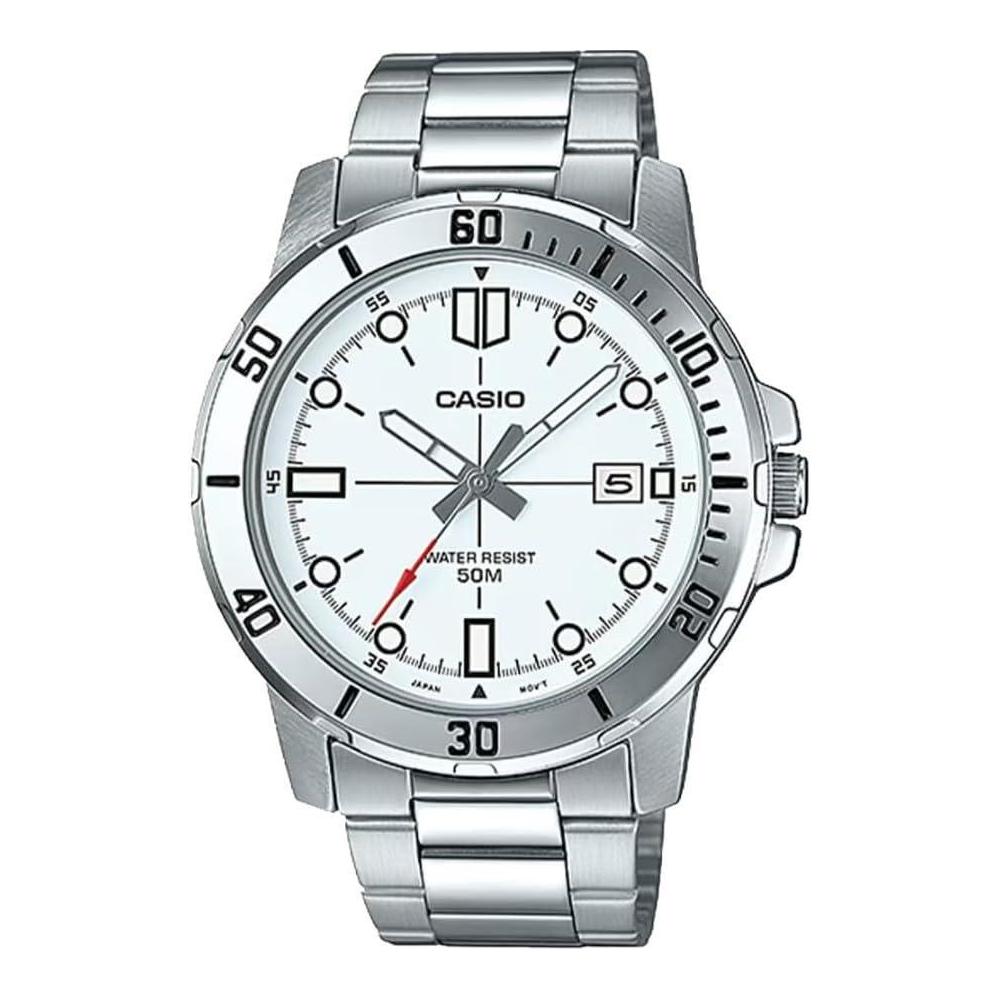 Casio reloj de acero inoxidable estilo buceador para hombre, resistente al agua, con correa de resina y movimiento de cuarzo