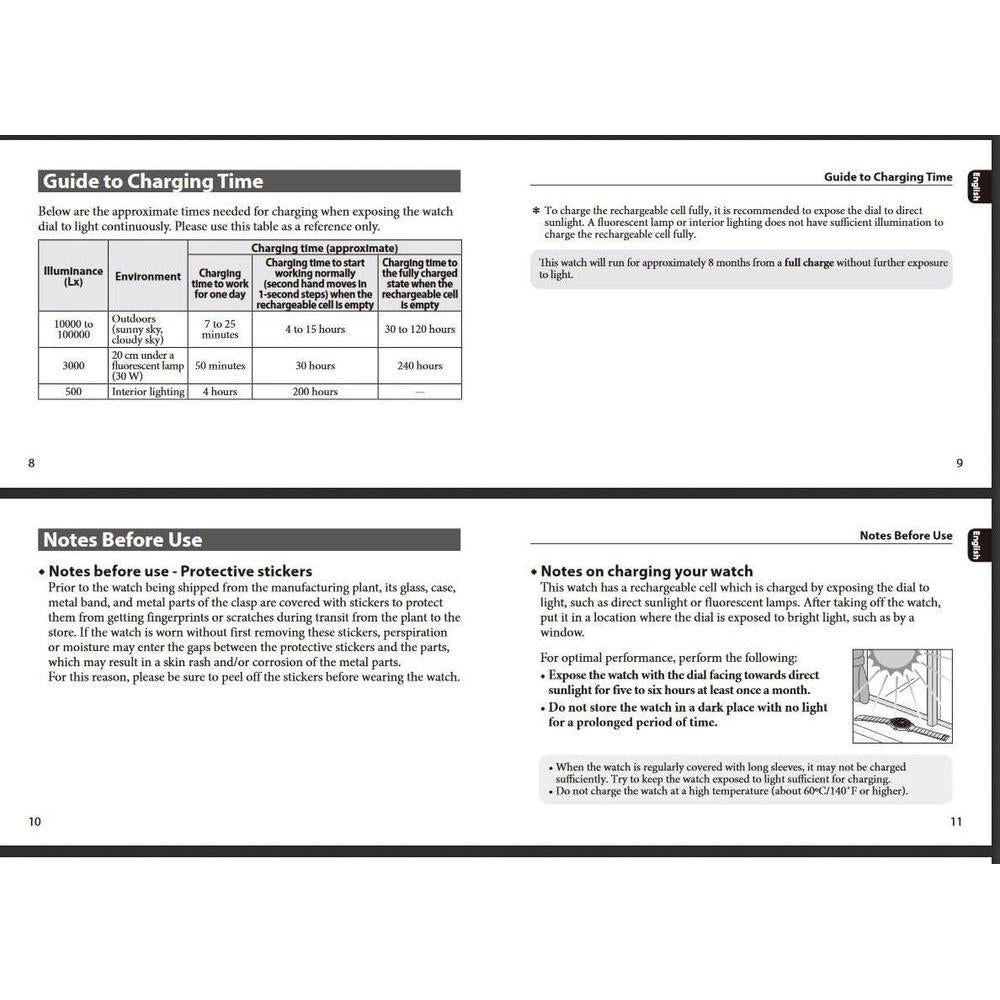 - Características especiales: Segundero, Brilla en la oscuridad, Segunda mano, Calendario de fechas, Energía solar, 328.1 ft (100 metros) resistente al agua