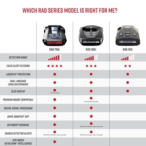 Cobra RAD 480i Laser Radar Detector – Long Range Detection, Bluetooth, Apple CarPlay and Android Auto Compatible, LaserEye Front and Rear Detection, Digital Signal Processing, Black