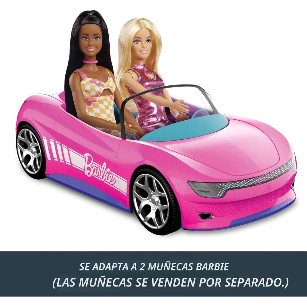 Coche RC Hot Wheels Barbie Convertible Rosa, para 2 Muñecas Barbie y Maletero que Abre, con Hoja de Pegatinas