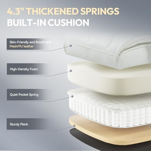 Dowinx Big and Tall Office Chair with Pocket Spring Cushion,High Back Computer Gaming Chairs with Adjustable Armrests and Lumbar Support,Executive Desk Chairs with Footrest(PU Leather,White)