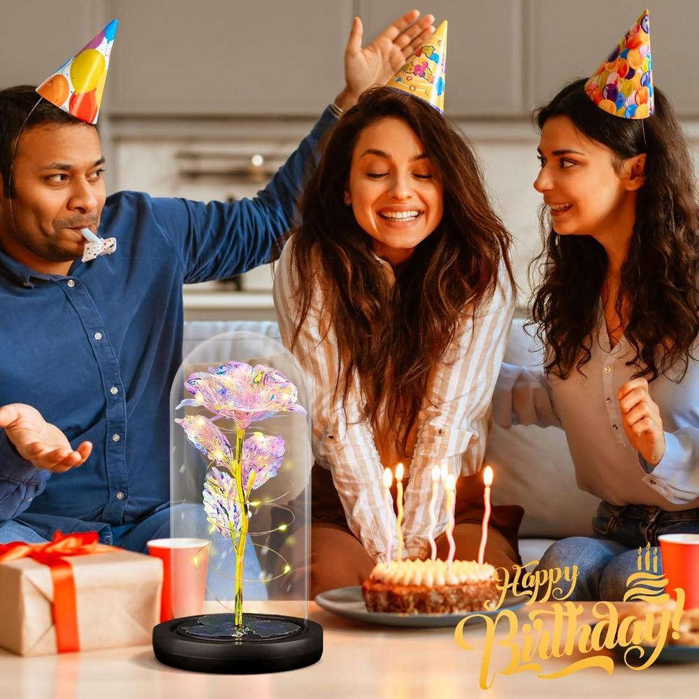 Rosa eterna en domo de cristal con luz LED