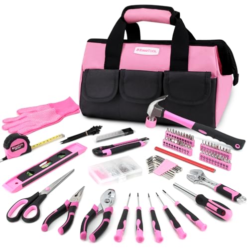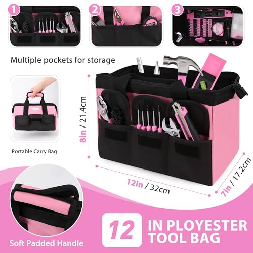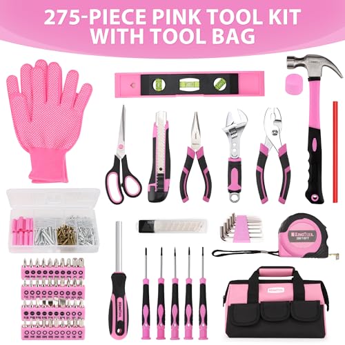 KingTool 275-Piece Pink Tool Set - Pink Tool Kit with 12" Wide Mouth Open Pink Tool Storage Bag, Womens Tool Kit for House, Perfect for DIY Projects & Home Repairs