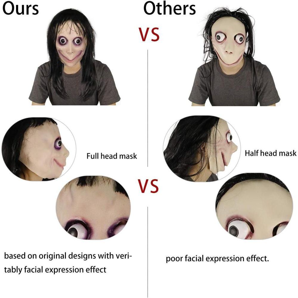 • La máscara Momo está hecha de látex de goma natural de alta calidad, y muy natural realista y fácil de limpiar