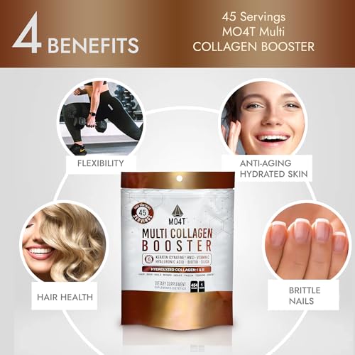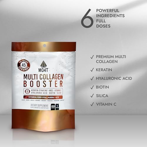 Multi Collagen Booster Powder – Extra Strength Collagen Supplement with Added Keratin, Biotin, Hyaluronic Acid, Vitamin C & Silica – Extra Nutrients for Hair, Nails,& Skin -1 Pound