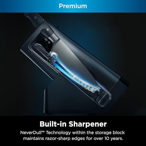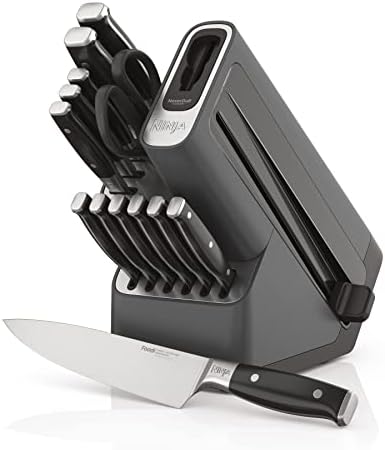 Ninja Knife Set, Knife Sharpener, Knife Block Set, Stainless Steel Knives, 14 Piece Set, Steak Knives, Chef Knives and More, Foodi NeverDull, Black, K32014