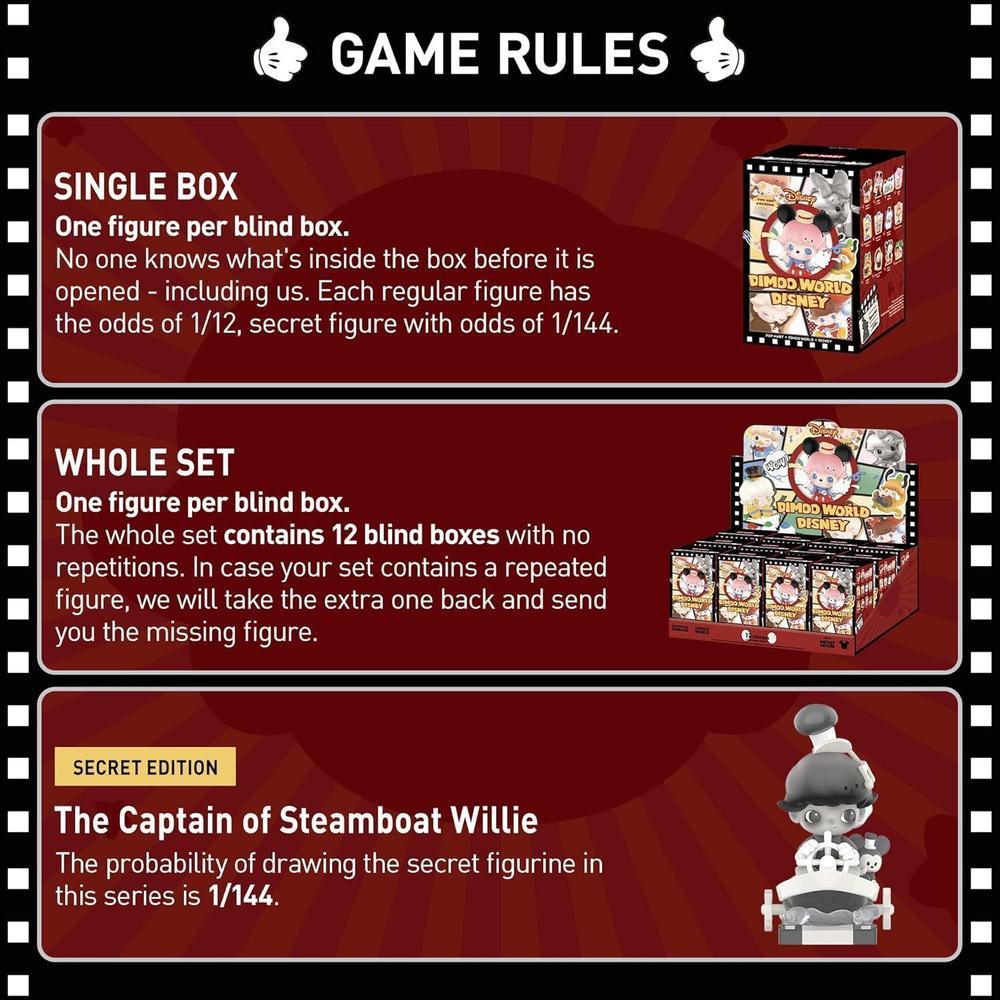 • POP MART Figuras de la serie DIMOO WORLD × DISNEY: La caja ciega contiene una figura aleatoria de una serie específica. Cada caja ciega solo contiene una figura. Nadie, incluidos nosotros, sabe lo que hay dentro. Esta colección contiene 12 figuras de caja ciega, una de ellas podría ser la edición secreta.