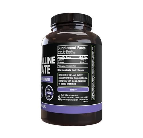 PURE ORIGINAL INGREDIENTS L-Citrulline DL-Malate 2:1 (365 Capsules) No Magnesium Or Rice Fillers, Always Pure, Lab Verified